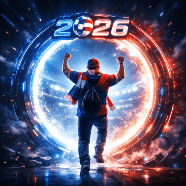 10 “2026 Portal Entry” A cinematic AR experience where the fan appears to step through a glowing neon circular portal branded with ‘2026’, symbolizing the future of global sports.