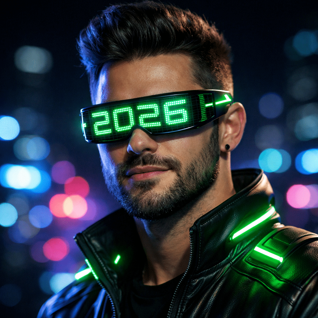 2 “Cyberpunk LED Glasses” Futuristic AR glasses with a scrolling ‘2026’ LED display. This filter adds a sleek, high-tech aesthetic to any fan’s look, blending sports and sci-fi.