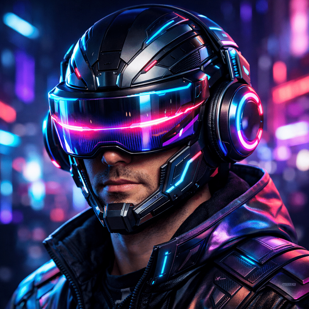 6 “Futuristic AR Helmet” A detailed 3D AR helmet with glowing visors and integrated tech accents. This filter offers a bold, “Cyber-Warrior” look for the modern sports enthusiast.