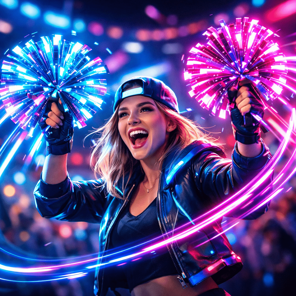 7 “Luminous Cheer Props” Dynamic AR pom-poms that leave mesmerizing neon light trails with every movement. Ideal for high-energy celebrations and social media stories.