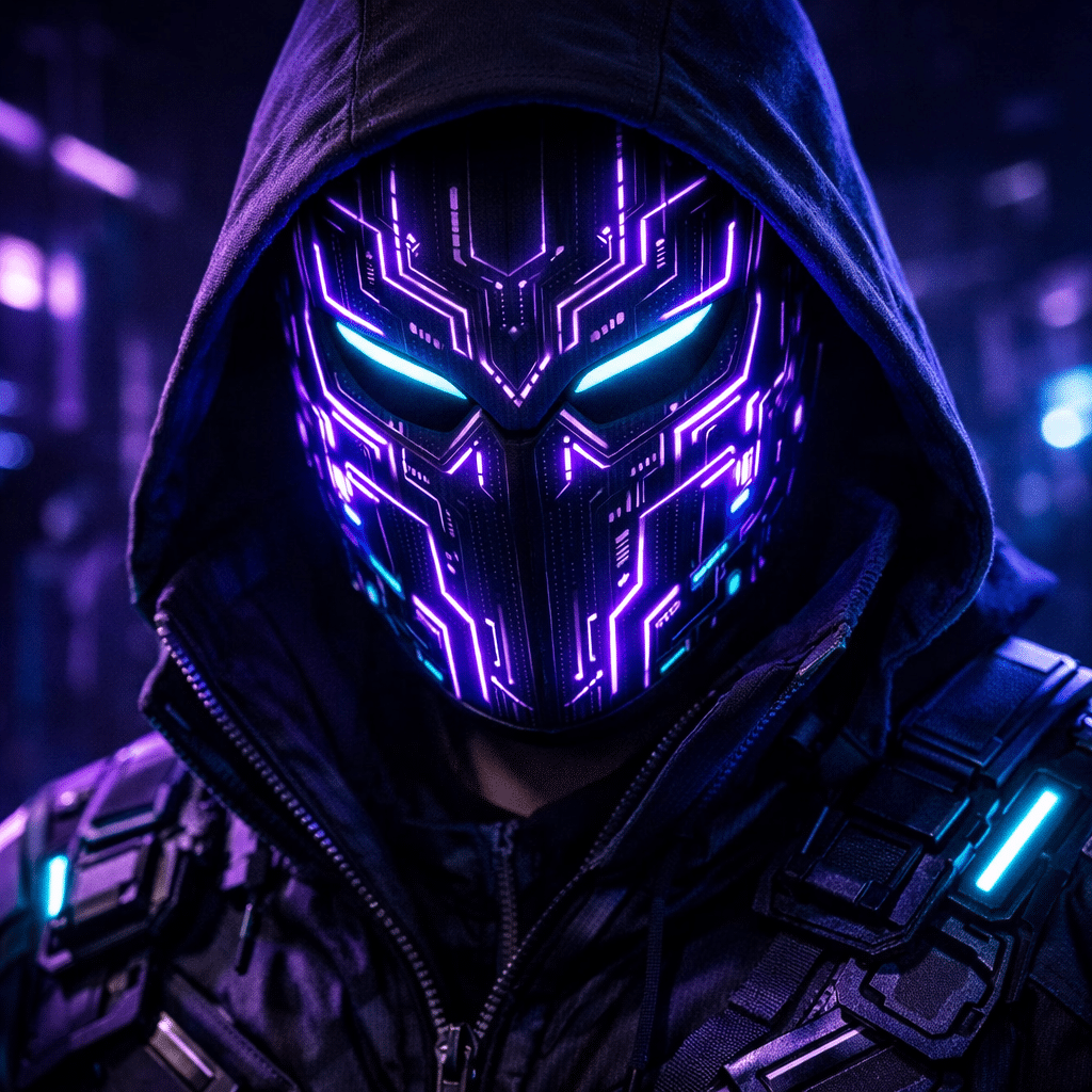 8 “Digital Tech Mask” A sophisticated neon face mask featuring electric purple and cyan circuitry patterns. A mysterious and stylish filter for fans who want to stand out.