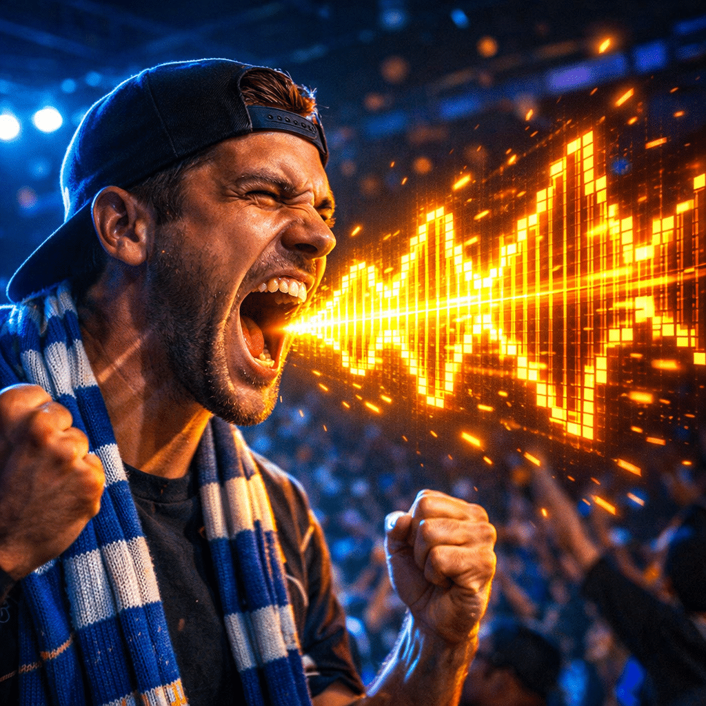 9 “Neon Sound Waves” A visual representation of fan cheers, showing glowing neon sound waves radiating from the user. Captures the raw energy and volume of the stadium.